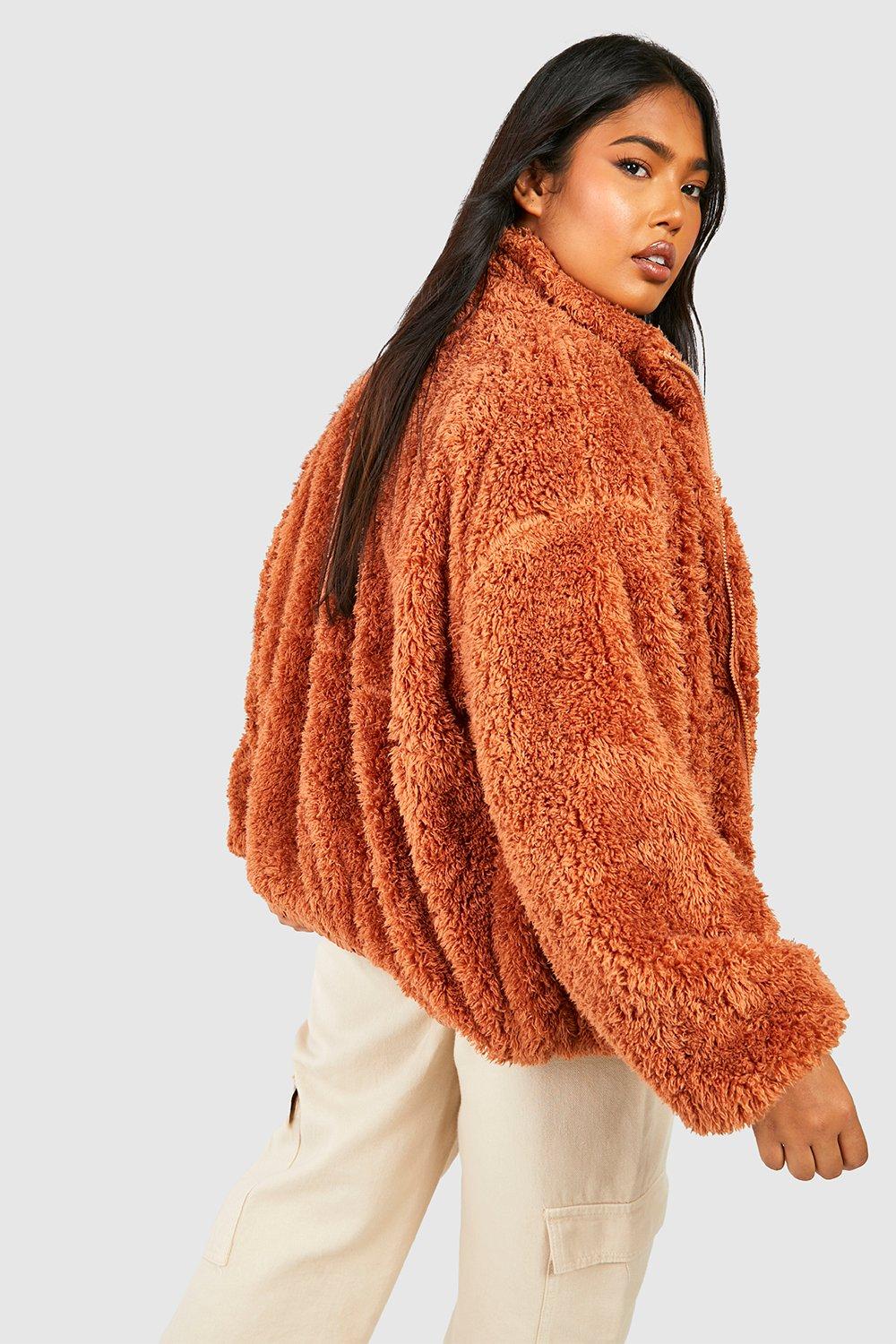 Women s Plus Pocket Detail Borg Jacket Boohoo UK Very well made.