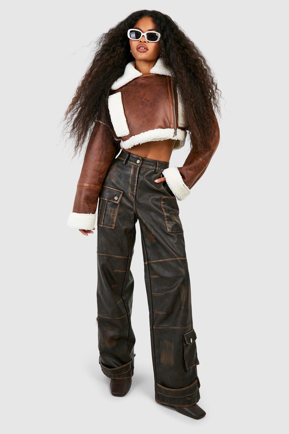 Women s Teddy Trim Cropped Aviator Jacket Boohoo UK Very well made.
