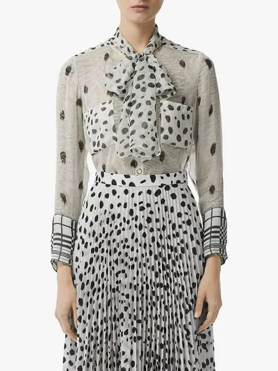 Burberry Animal print Tie neck Long sleeve Silk Blouse In Black Very well made.