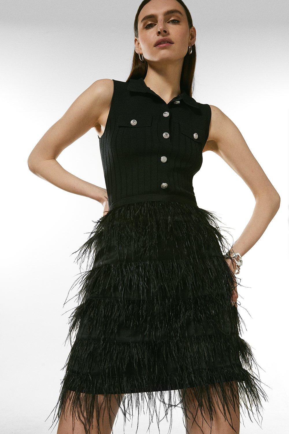 Felis Satin Feather Skirt Black 45.00 One New Change Very well made.